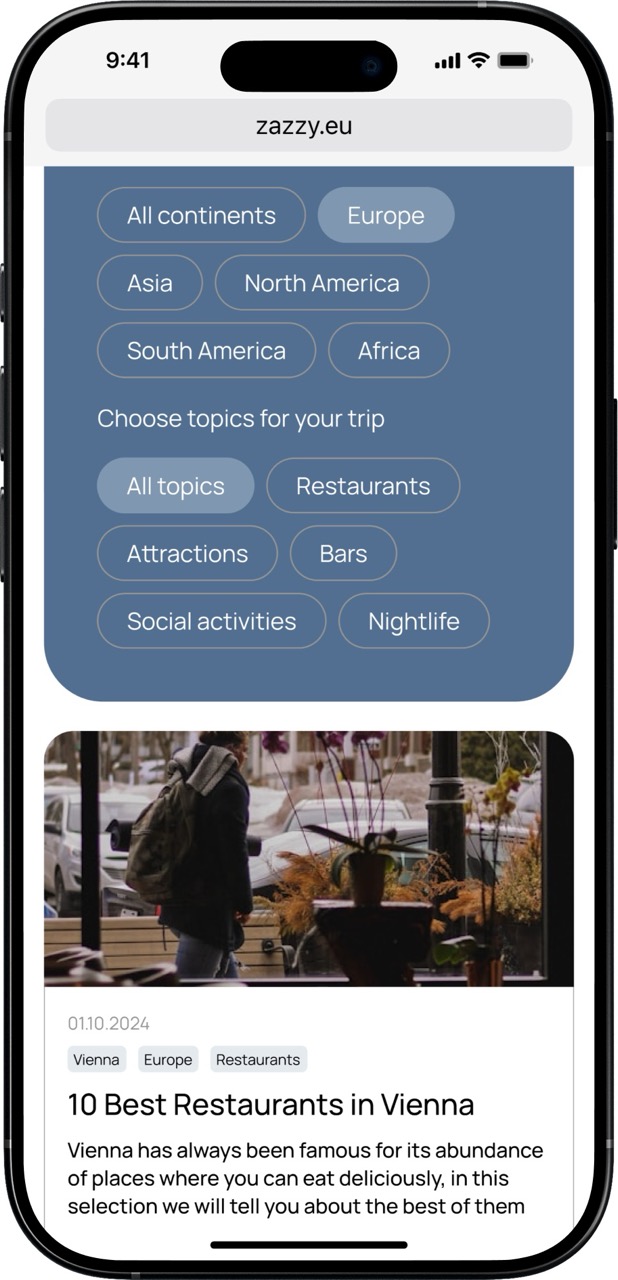 Sorted by region and topic, articles will quickly help you immerse yourself in your trip even at the preparation stage: "Which restaurants should I visit?", "Which hotel should I choose?" or "Where can I take the most beautiful photos on Instagram?", all this and more is collected in one place for the convenience of the user and is constantly updated.